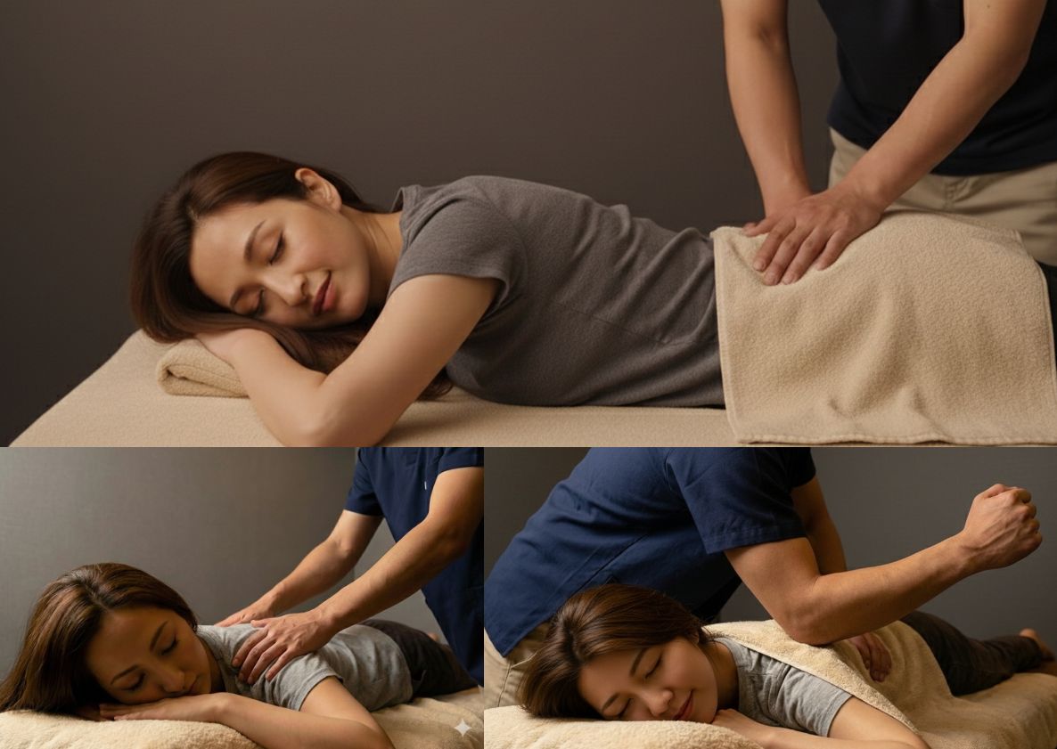 匠の手技に、深部の硬い筋膜の癒着を剥がす特殊技術を組み合わせることで、即効改善を実現します。長年の痛みや難治性の症状でお悩みの方に特におすすめいたします。