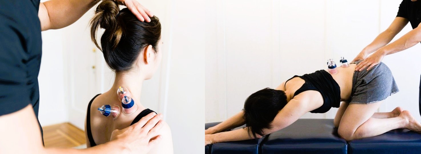 特徴:伝統的な吸い玉を運動学的に進化させたアプローチで、ダイナミックカッピング(カップを滑らせながら動かす手技)を主体とします。カップを装着し、自動・他動運動・ストレッチを組み合わせ、浅層の筋膜ネットワーク全体を解放する技術です。