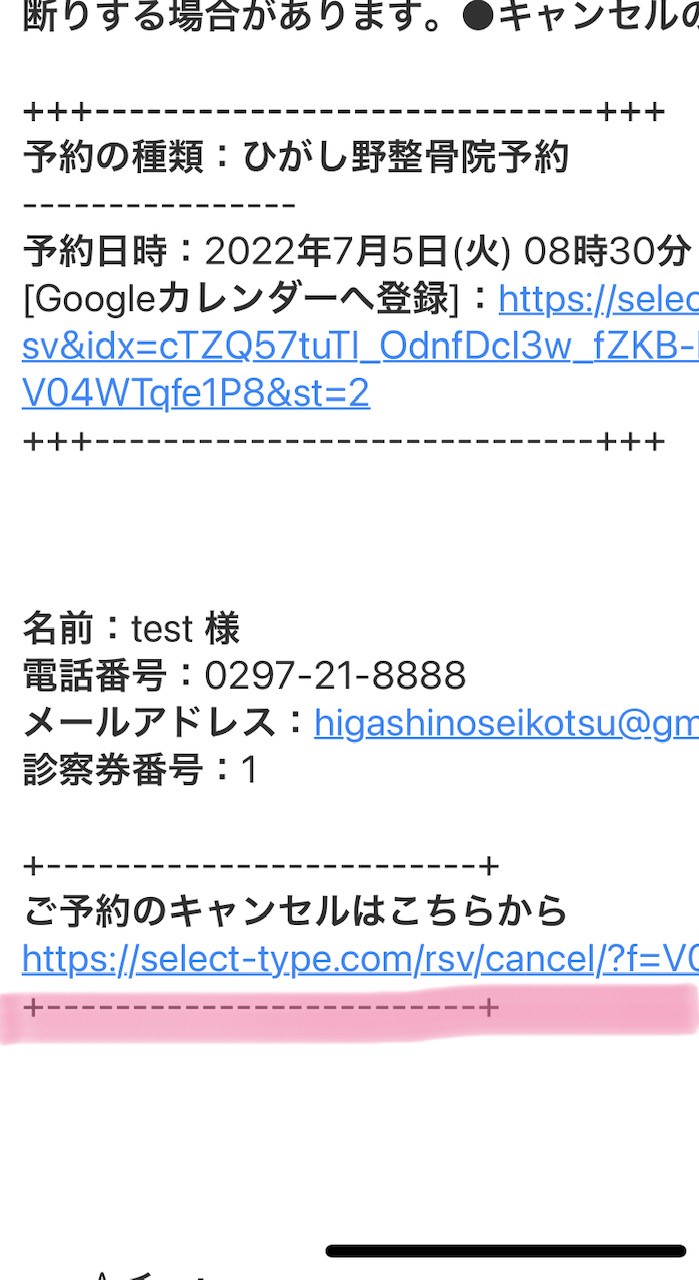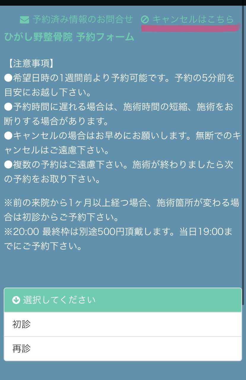 予約のキャンセル方法について説明します。3通りありますのでご確認頂けると幸いです。 ![]() ①予約を取ると予約確認のメールが送られます。メールの最下部に【ご予約のキャンセルはこちら】とありますので、このリンクから予約のキャンセルを行って下さい。 ![]() ②予約フォームの右上、【キャンセルはこちら】からも予約のキャンセルが可能です。予約時に記載頂いたメールアドレスを入力することで予約のキャンセルができます。 ③0297218888 電話でのキャンセル いずれの場合も、止むを得ずキャンセルなさる場合はお早めにお願いします。注意事項等については、予約フォームに記載されているのでご確認下さい。 守谷市 守谷駅周辺でお身体の事でお困りの方は ひがし野整骨院 にご相談下さい。首や肩の痛み、腰痛、交通事故、捻挫や打撲、スポーツでの怪我など、質の高い施術で痛みを改善させます。 |